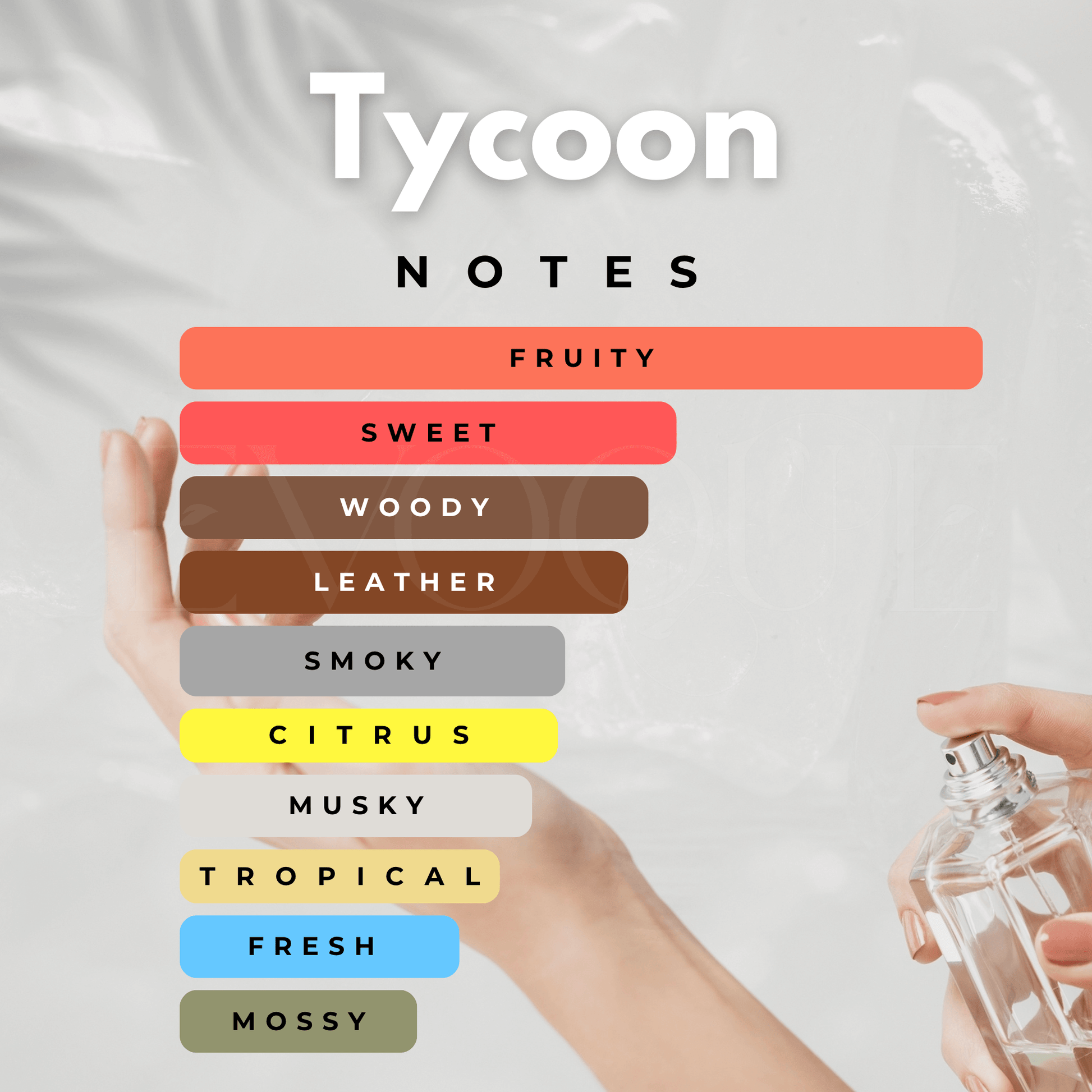 Tycoon is the scent of success—sophisticated, powerful, and effortlessly refined. Designed for the modern professional, this premium fragrance embodies confidence and authority, making it the perfect choice for the office and beyond.